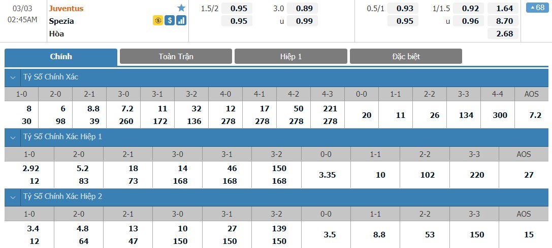 Soi kèo tài xỉu, kèo tỷ số Juventus vs Spezia