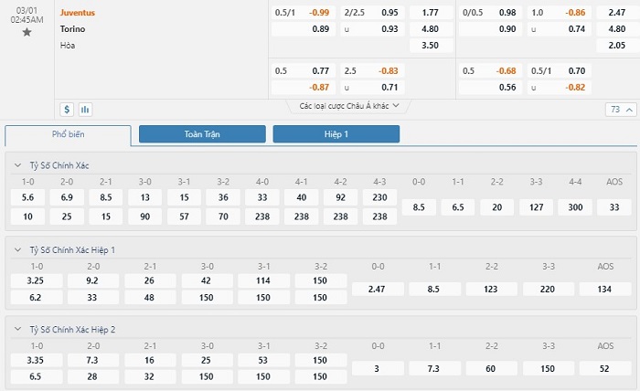 Soi kèo châu Á Juventus vs Torino