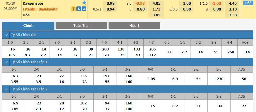 Soi kèo tổng quát Kayserispor vs Istanbul Buyuksehir
