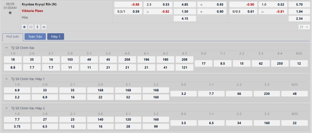 Dự đoán kèo tỷ số hiệp 1: Kryvbas 0-0 Plzen
