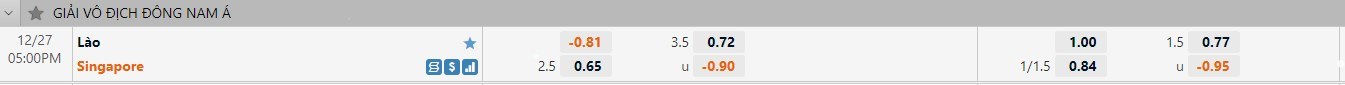 Soi kèo tài xỉu, kèo tỷ số Lào vs Singapore