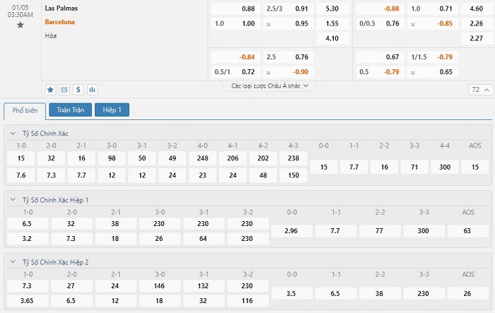 Trong 5 trận đấu gần nhất trên mọi đấu trường, Las Palmas đã mang về cho mình 5 pha lập công cùng với việc đã có 3 lần nào phải vào lưới nhặt bóng. Bên kia chiến tuyến, Barcelona đã sở hữu 10 bàn thắng, còn lại là việc hàng thủ đã phải nhận 13 bàn thua. Các nhà đầu tư nên tin tưởng vào khả năng ra Xỉu ở cuộc đối đầu này với tỷ lệ tài xỉu là 2 3/4 trái.