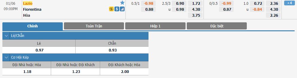 Soi kèo tài xỉu, kèo tỷ số Lazio vs Fiorentina
