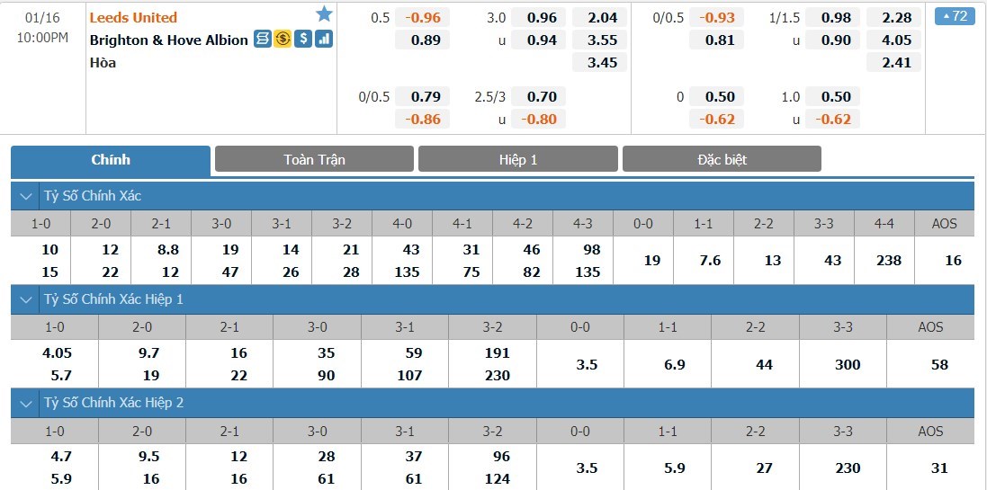 Leeds United vẫn đang trình diễn một phong độ rất thiếu ổn định. Ở liên tiếp 2 trận đấu gần đây, Leeds đều phải nhận những trận thua nặng nề với tỷ số 0-3. Hàng phòng ngự của Leeds vẫn đang thi đấu quá tệ và Leeds đang không được đánh giá quá cao. Phía bên kia chiến tuyến, Brighton lại đang có phong độ không quá tệ và họ không phải cái tên quá dễ bị khuất phục ở thời điểm hiện tại. Trong 6 trận đấu gần đây, chỉ 1 lần Brighton để thua. So với Leeds, Brighton đang không quá thua kém và đội khách hoàn toàn có thể sẽ có điểm ở trận này. Với tỷ lệ chấp 1/2 trái, cửa dưới Brighton sẽ là lựa chọn được đánh giá cao hơn cho kèo châu Á full time.