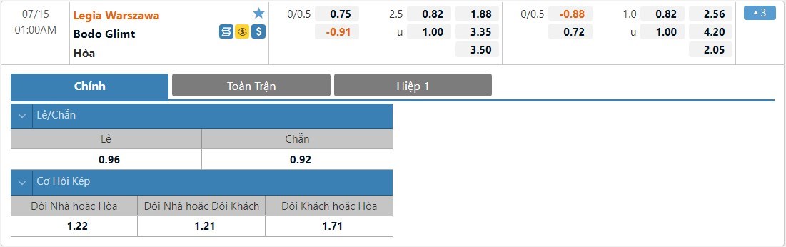 Phong độ của Legia cũng đang là rất ổn định với chuỗi 3 chiến thắng liên tiếp. Trong khi đó Bodo Glimt lại đang có phong độ tệ với chuỗi 3 trận không thắng và cửa cược Bodo Glimt cũng thua kèo ở 3/4 trận gần nhất. Phải làm khách ở trận này, khó khăn sẽ càng nhiều hơn cho Bodo Glimt khi mà họ cũng đang có phong độ khá nghèo nàn trên sân khách. Với tỷ lệ chấp nhẹ 1/4 trái, cửa trên Legia sẽ là lựa chọn có thể tin tưởng ở kèo đấu này.
