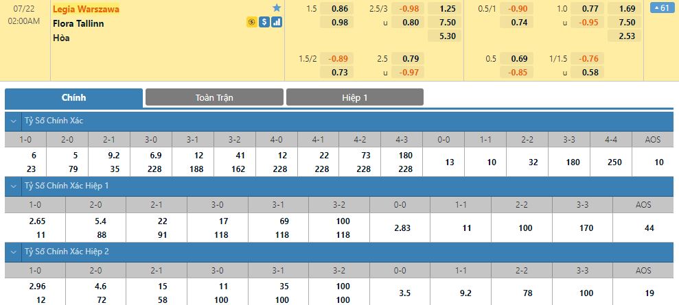 Soi kèo tổng quát Legia Warszawa vs Flora Tallinn