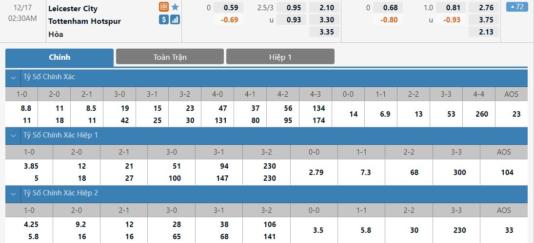 Soi kèo châu Á Leicester City vs Tottenham Hotspur