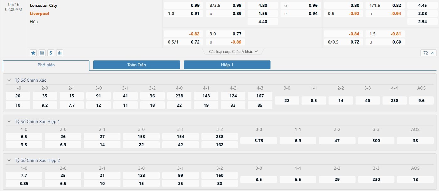 Soi kèo châu Á Leicester vs Liverpool