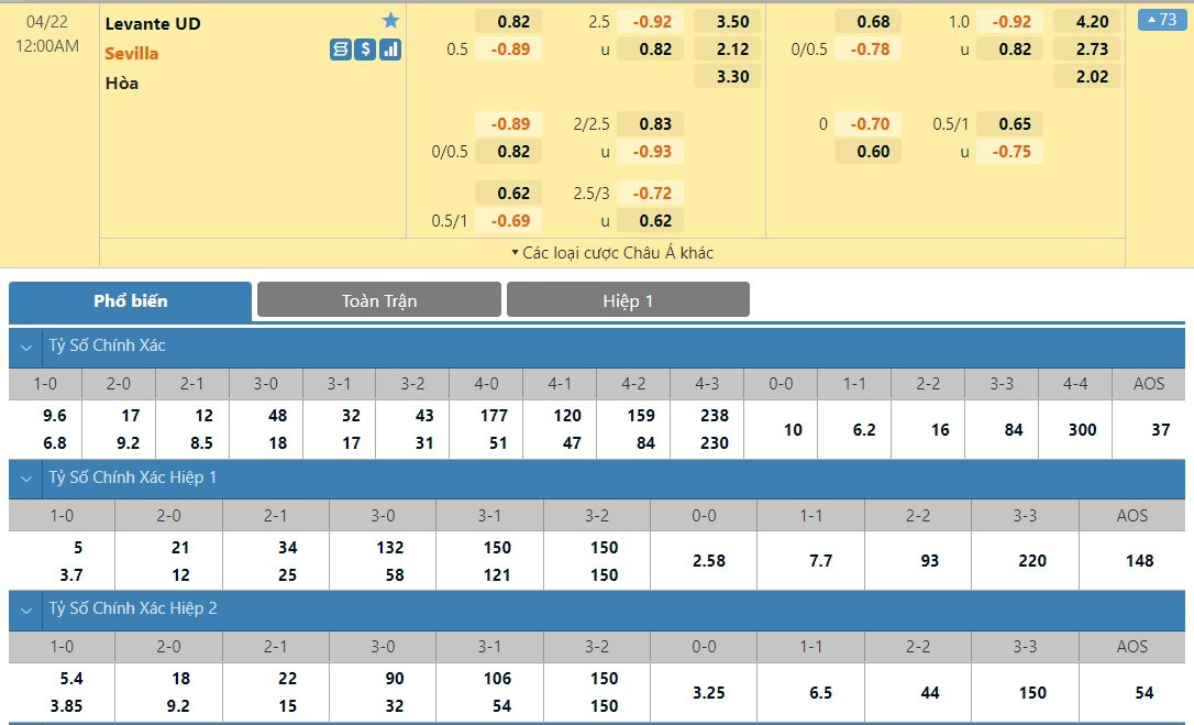 Soi kèo tài xỉu, kèo tỷ số Levante vs Sevilla