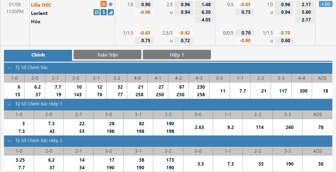 Lille sẽ được đánh giá cao hơn Lorient khá nhiều ở kèo đấu này. Tỷ lệ cược của Lille chỉ là 1 ăn 1.48 trong khi đó Lorient có tỷ lệ cược là 1 ăn 6.30. Tỷ số hòa có tỷ lệ cược là 1 ăn 4.05. Lille lúc này đang có dấu hiệu lấy lại được phong độ. Được thi đấu trên sân nhà trước một Lorient khá yếu, đội chủ nhà sẽ đủ khả năng để giành được một chiến thắng.