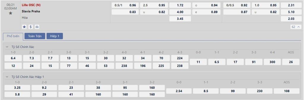 Dự đoán kèo tỷ số hiệp 1: Lille 1-1 Slavia Praha