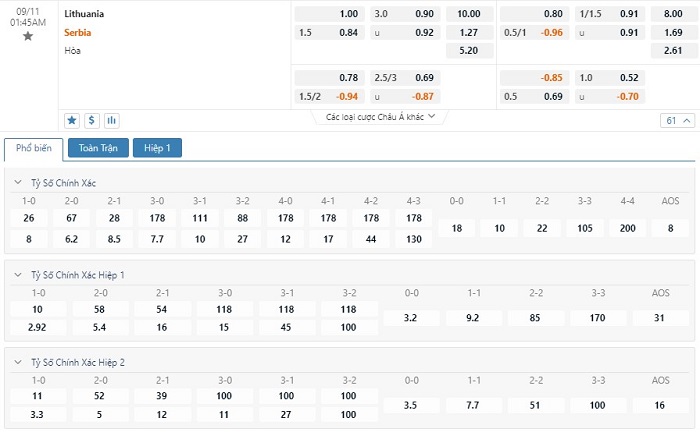 Soi kèo tổng quát Lithuania vs Serbia