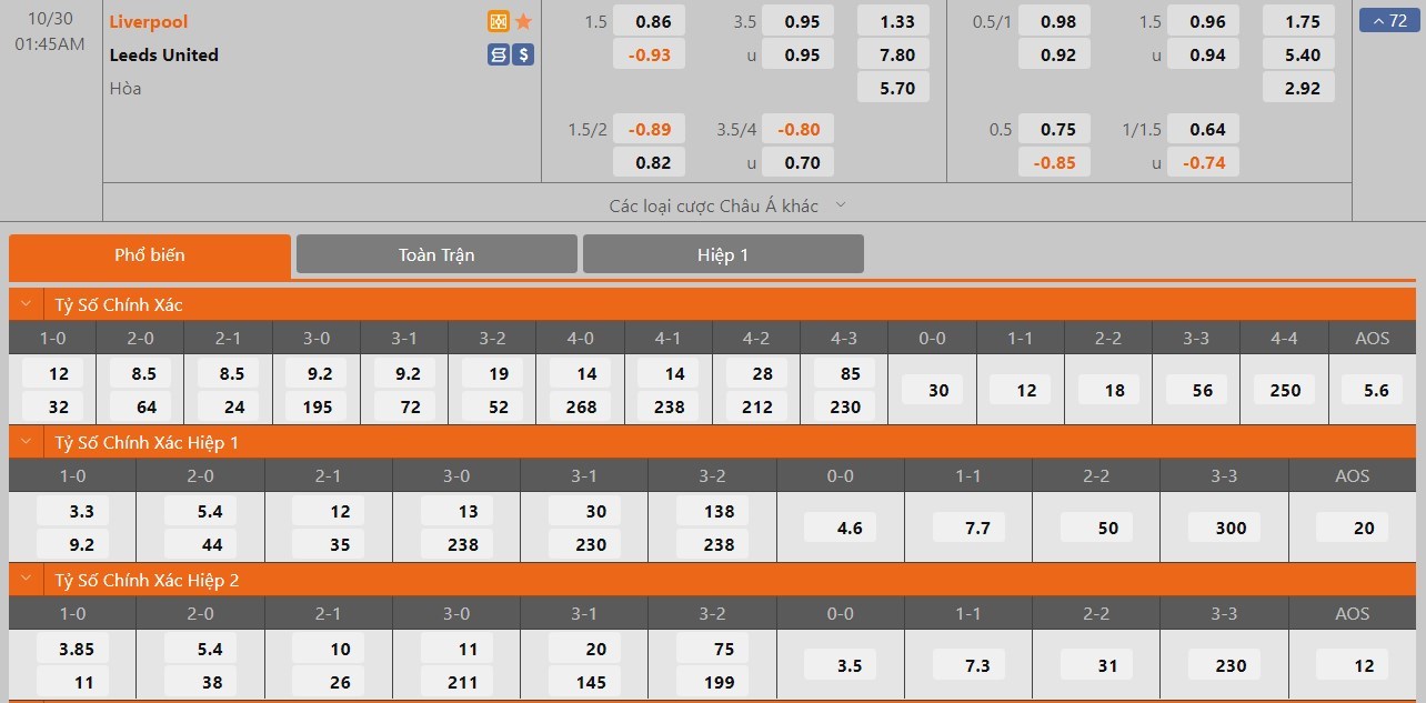 Soi kèo châu Á Liverpool vs Leeds United