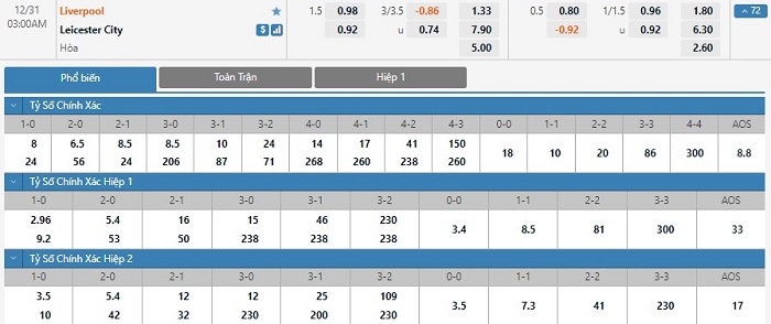 Soi kèo tổng quát Liverpool vs Leicester