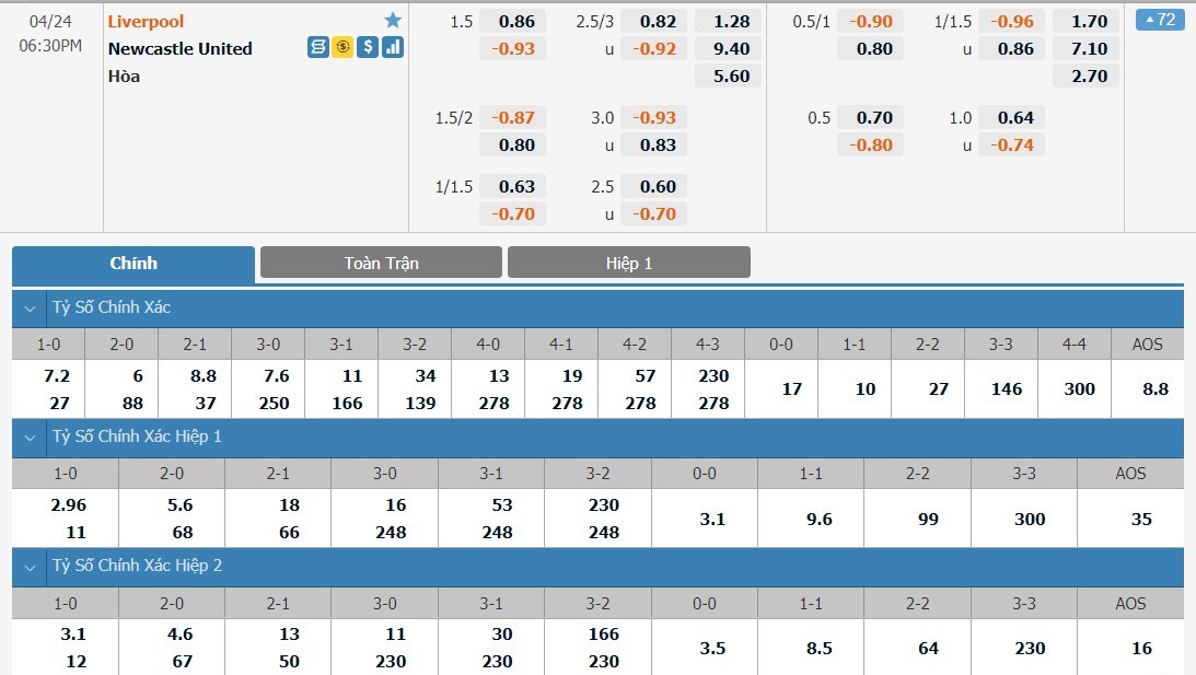 Soi kèo châu Á Liverpool vs Newcastle United
