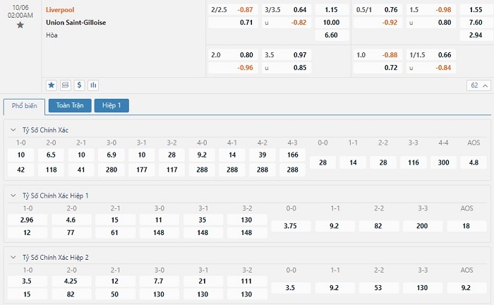 Dù rằng chuỗi trận thắng của Liverpool vừa mới bị chấm dứt nhưng điều đó không ảnh hưởng quá nhiều đến cách nhìn nhận của đội ngũ chuyên môn. Nhà cái vẫn đánh giá rất cao vào kịch bản đội chủ sân Anfield sẽ tạo ra cơn mưa bàn thắng vào lưới Union Saint-Gilloise khi để Liverpool chấp tỷ lệ 2 1/4 trái. Được chơi trên sân nhà trước một đối thủ vừa sức, Liverpool hoàn toàn có thể sẽ cho thấy sức mạnh để giành một chiến thắng thuyết phục. Cửa cược Liverpool sẽ là lựa chọn khá hợp lý cho kèo đấu này. Mặc dù đây là lần đầu hai đội gặp gỡ nhưng sự chênh lệch về đẳng cấp là không cần bàn cãi.