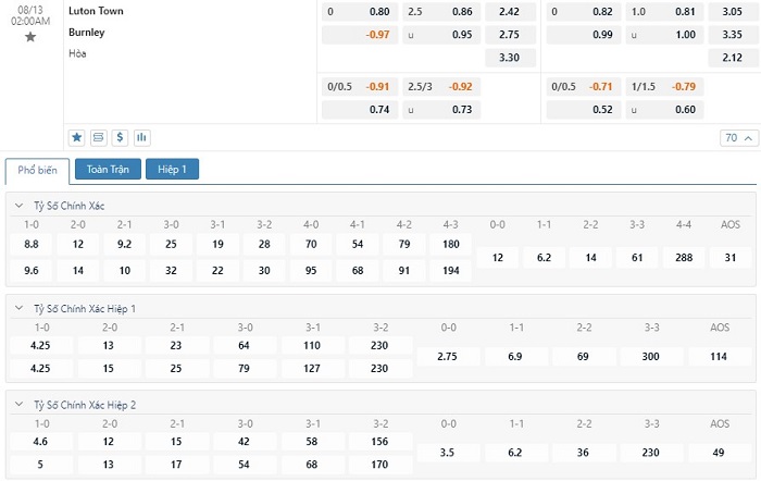 Soi kèo tài xỉu, kèo tỷ số Luton vs Burnley