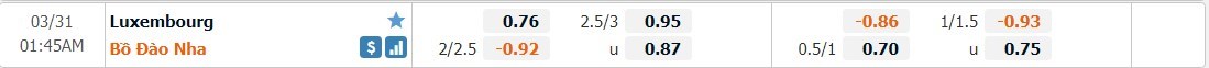 Soi kèo châu Á Luxembourg vs Bồ Đào Nha