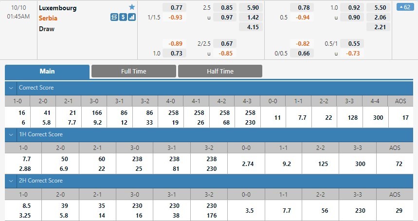 Dự đoán kèo tỷ số hiệp 1: Luxembourg 0-2 Serbia