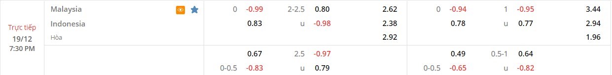 Dự đoán kèo tỷ số hiệp 1: Malaysia 0-2 Indonesia