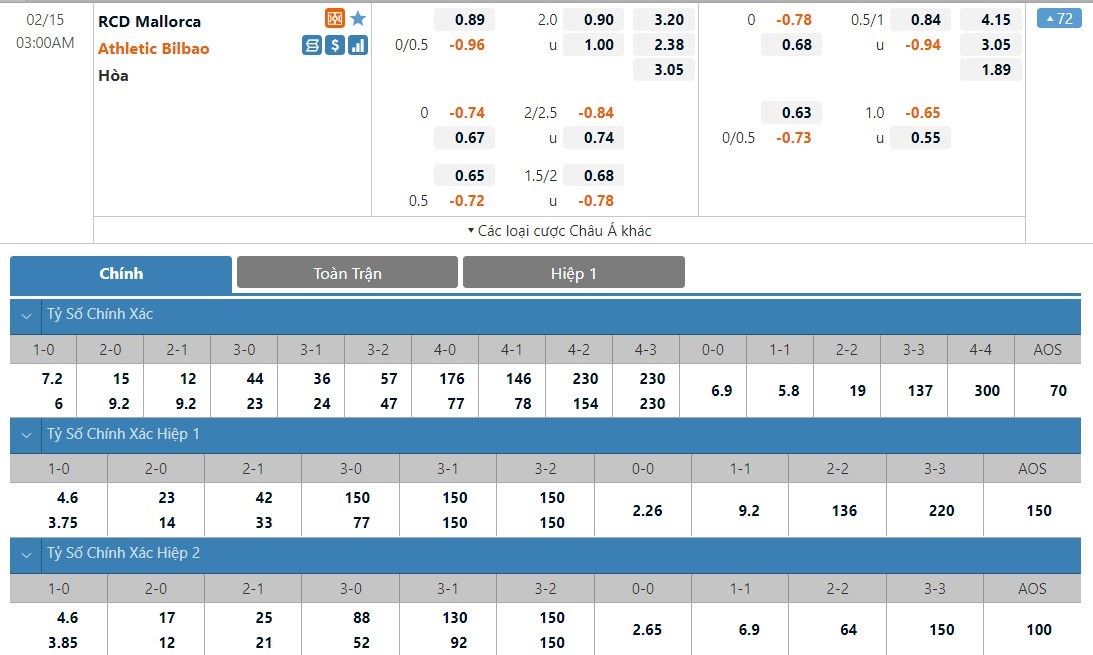 Soi kèo châu Á Mallorca vs Athletic Bilbao