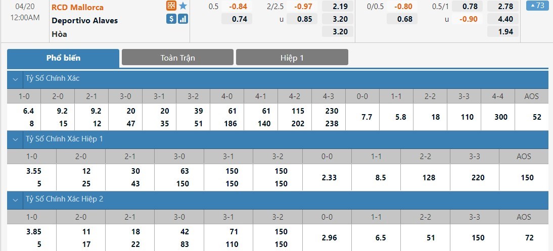 Soi kèo châu Á Mallorca vs Deportivo Alaves
