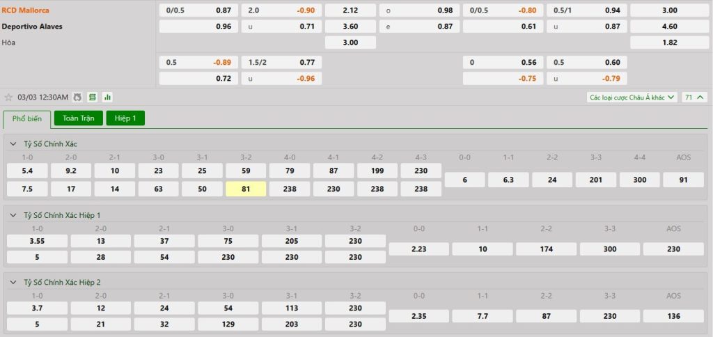 Soi kèo châu Á Mallorca vs Deportivo Alaves