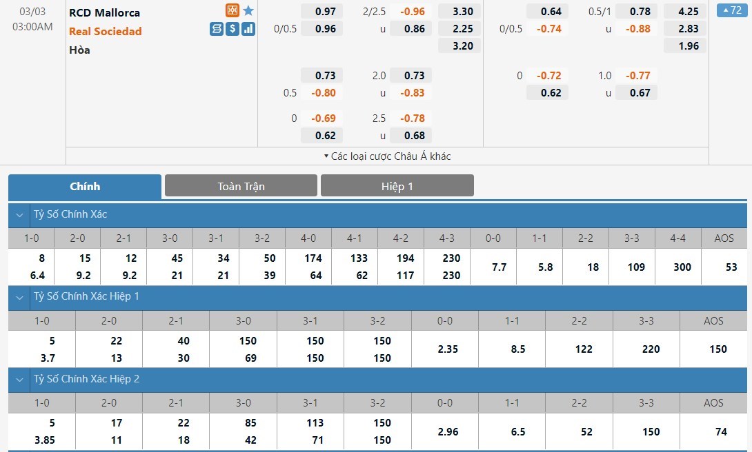 Soi kèo châu Á Mallorca vs Real Sociedad