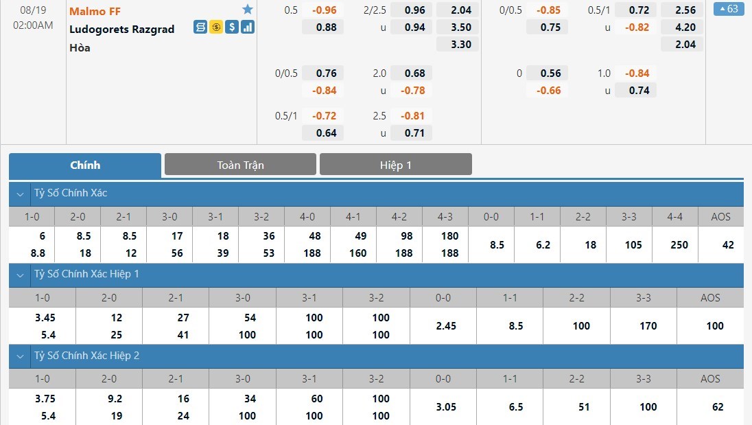 Soi kèo tài xỉu, kèo tỷ số Malmo FF vs Ludogorets Razgrad
