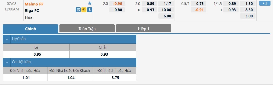 Soi kèo tổng quát Malmo FF vs Riga