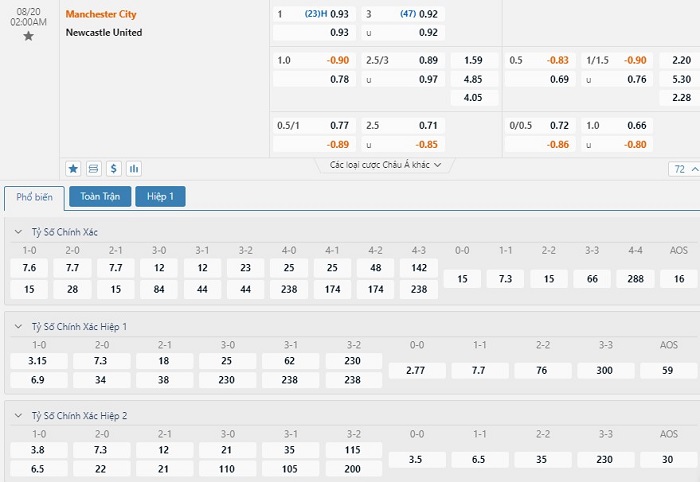 Soi kèo châu Á Manchester City vs Newcastle United