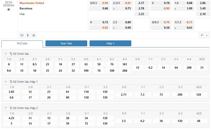 Soi kèo tài xỉu, kèo tỷ số Manchester United vs Barcelona