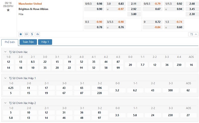Soi kèo châu Á Manchester United vs Brighton