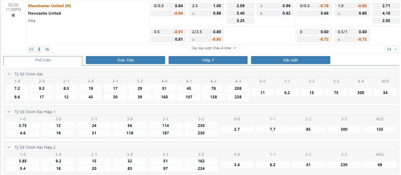 Soi kèo châu Á Manchester United vs Newcastle