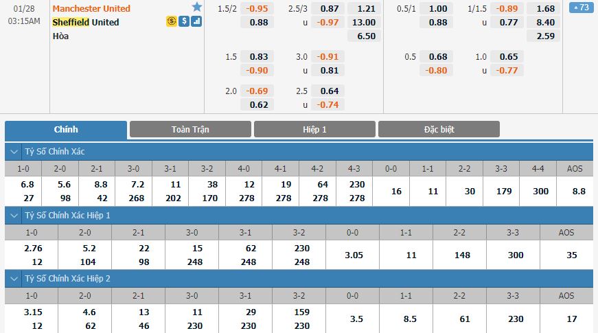 Soi kèo châu Á Manchester United vs Sheffield United