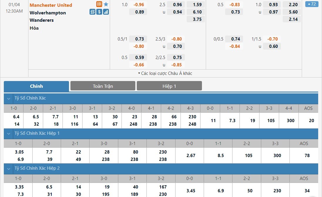 Soi kèo châu Á Manchester United vs Wolverhampton