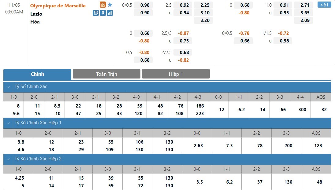 Soi kèo tài xỉu, kèo tỷ số Marseille vs Lazio
