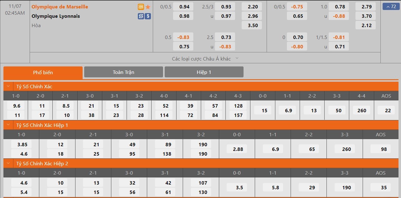 Soi kèo châu Á Marseille vs Olympique Lyonnais