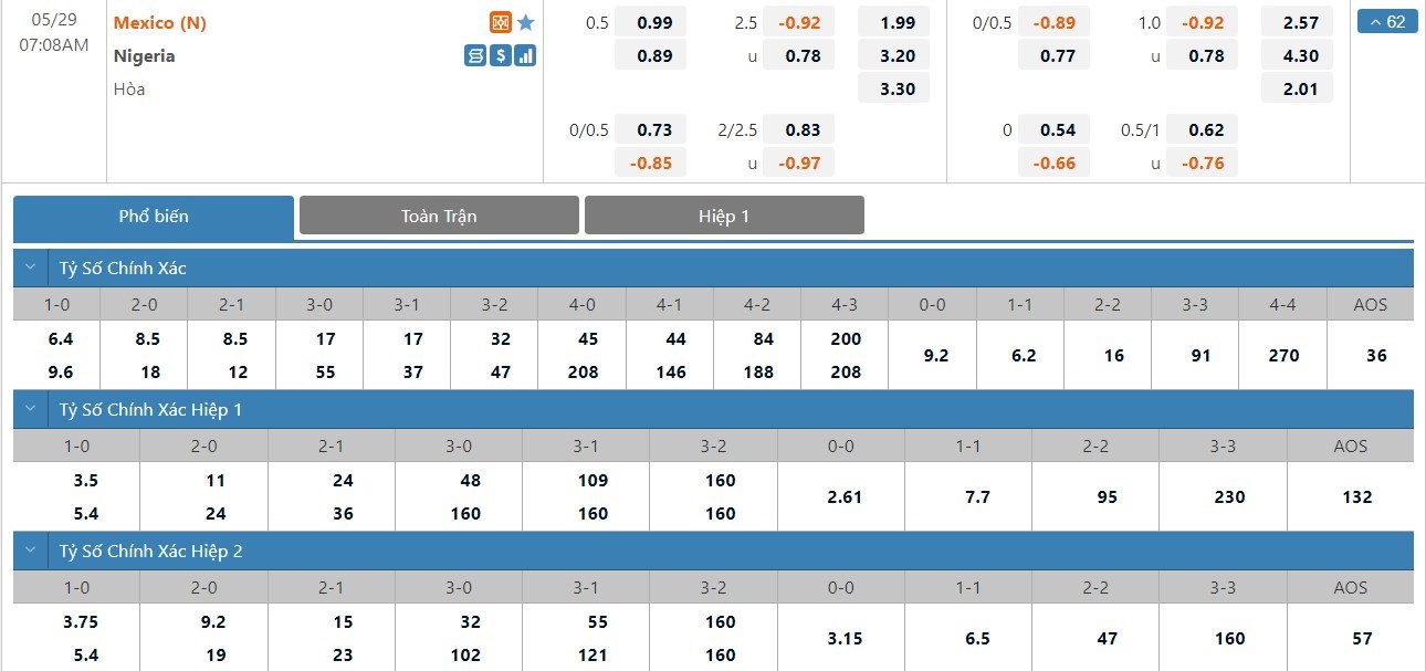 Soi kèo tài xỉu, kèo tỷ số Mexico vs Nigeria