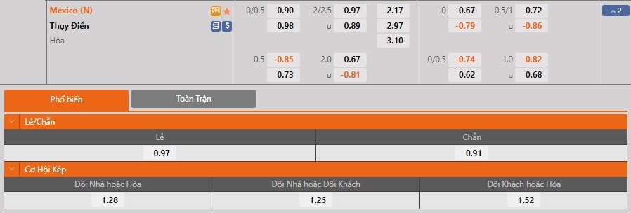 Soi kèo tổng quát Mexico vs Thụy Điển
