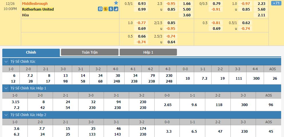 Soi kèo tổng quát Middlesbrough vs Rotherham