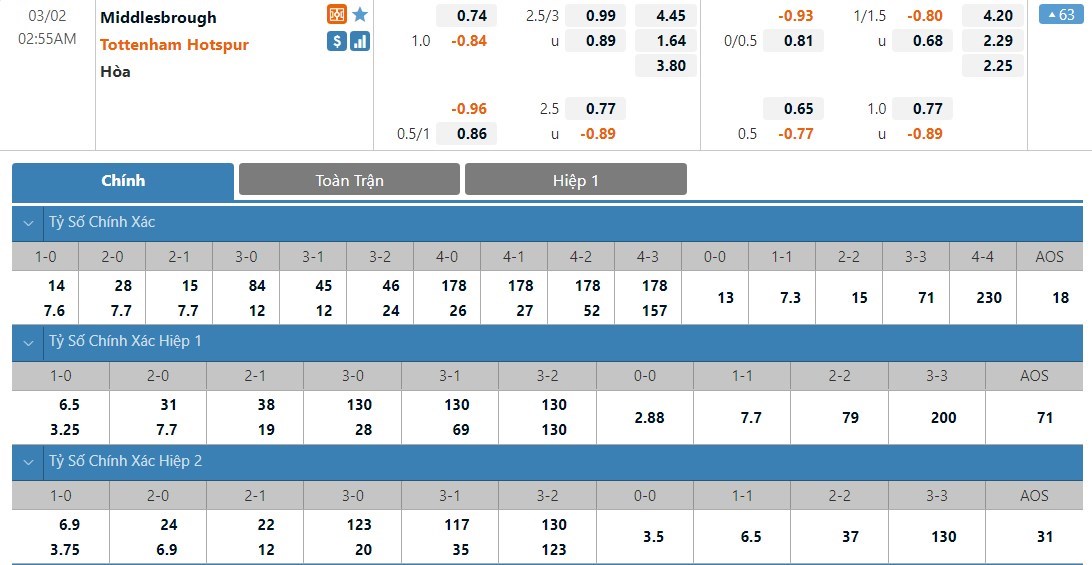 Với phong độ cao của những Harry Kane, Son Heung-min hay thậm chí là tân binh Dejan Kulusevski, Tottenham đang tấn công ổn. Trước một Middlesbrough không quá khó chịu, Tottenham có thể sẽ có được không ít bàn thắng ở trận này. Middlesbrough cũng là đội phòng ngự không quá ấn tượng và với tỷ lệ tài xỉu ở mức 2 3/4 trái, ô cược tài là lựa chọn có thể tin tưởng ở kèo đấu này.