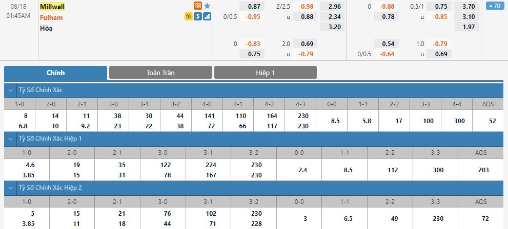 Soi kèo tài xỉu, kèo tỷ số Millwall vs Fulham