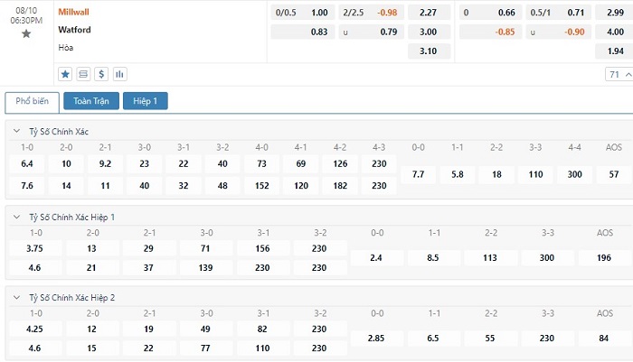 Soi kèo tài xỉu, kèo tỷ số Millwall vs Watford