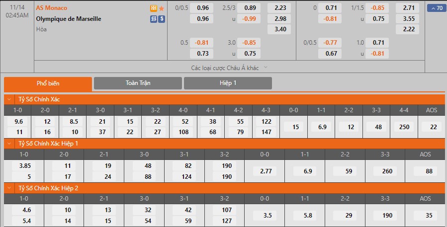 Soi kèo châu Á Monaco vs Marseille