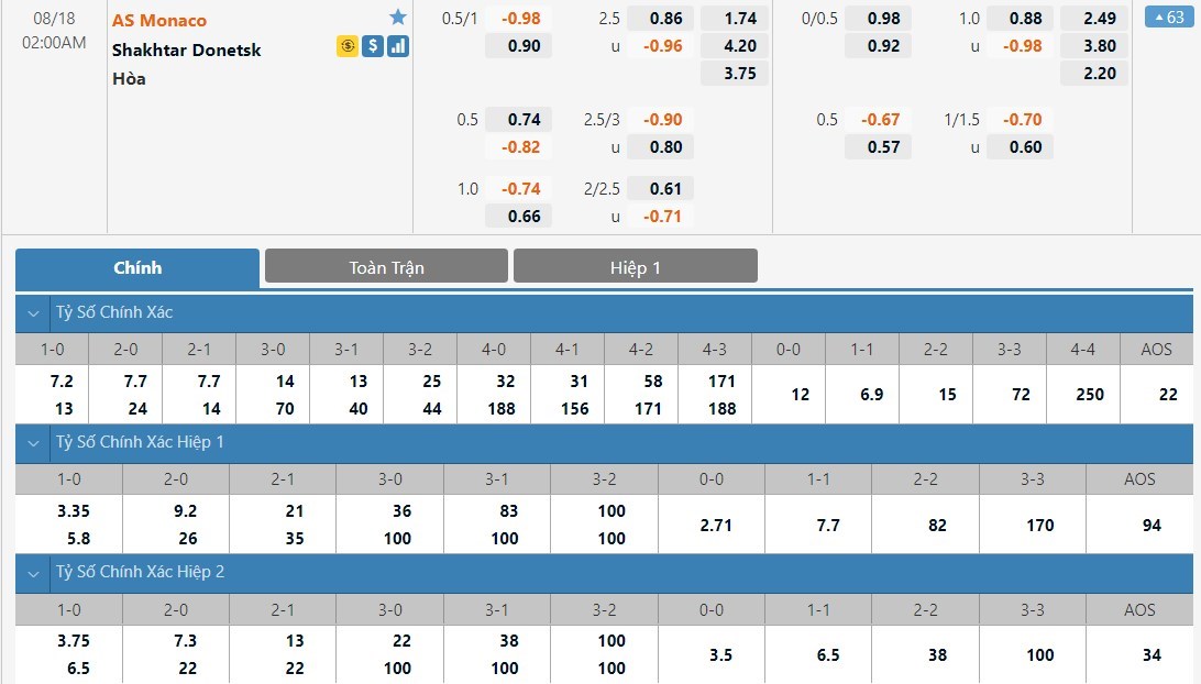 Soi kèo châu Á Monaco vs Shakhtar Donetsk