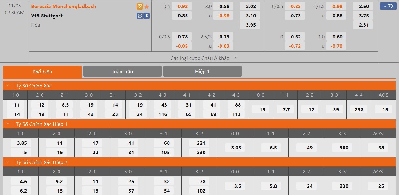 Soi kèo tổng quát Monchengladbach vs Stuttgart