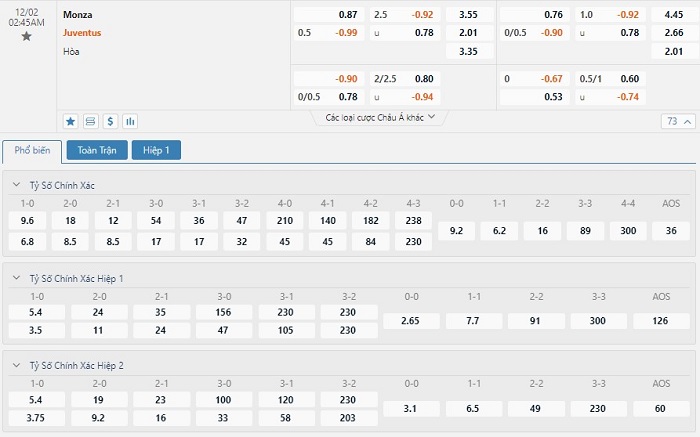 Soi kèo tài xỉu, kèo tỷ số Monza vs Juventus