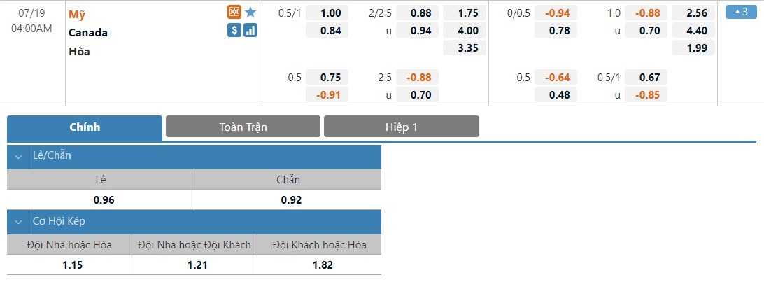 Soi kèo tài xỉu, kèo tỷ số Mỹ vs Canada