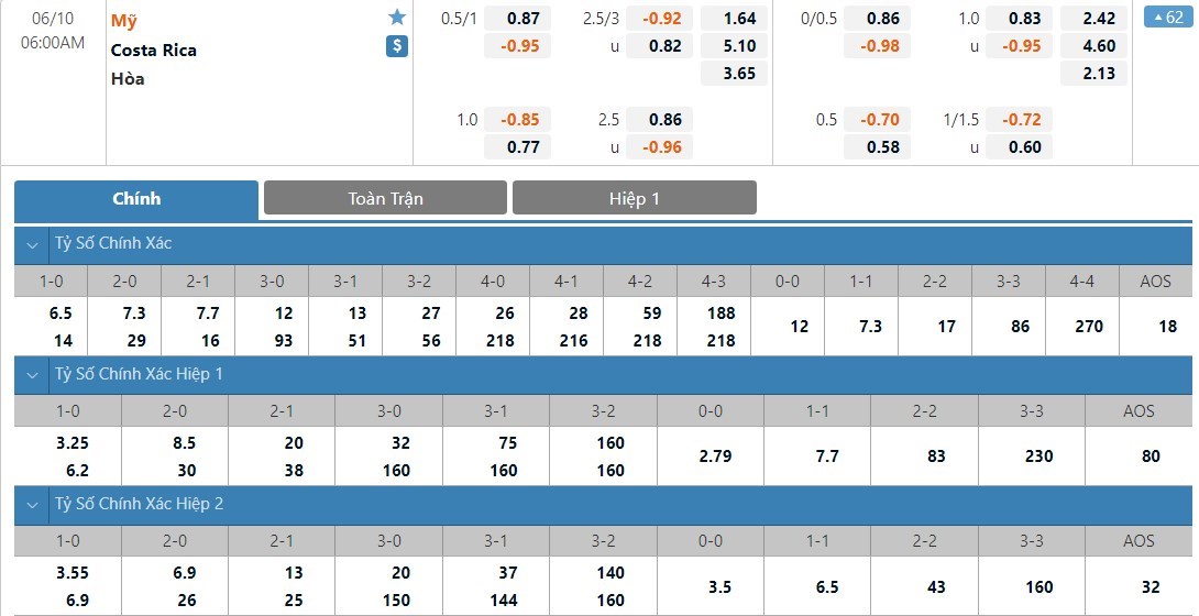 Soi kèo tài xỉu, kèo tỷ số Mỹ vs Costa Rica